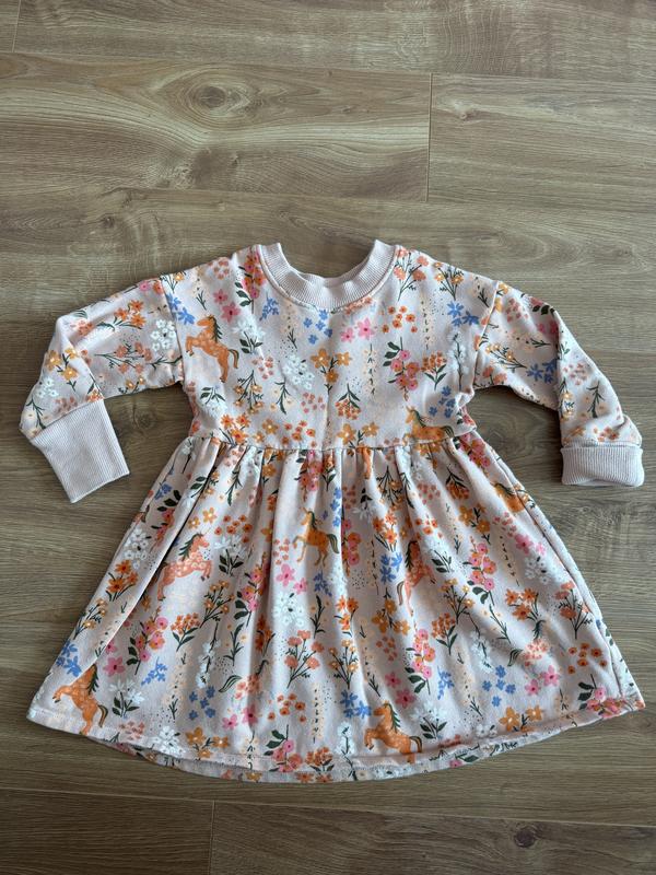 Платье в идеальном состоянии, очень теплое и красивое. Размер 104, носили до 116. Рукава можно закатать и откачать