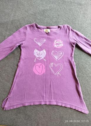 Платьице туничка фиолетового цвета в отличном состоянии на ребёнка 3-4 года. Длина изделия по спинке от плеча 47 см, полуобхват груди 29 см, длина рукава 33 см. Ткань хлопок, тянется. Модель 4635Т
