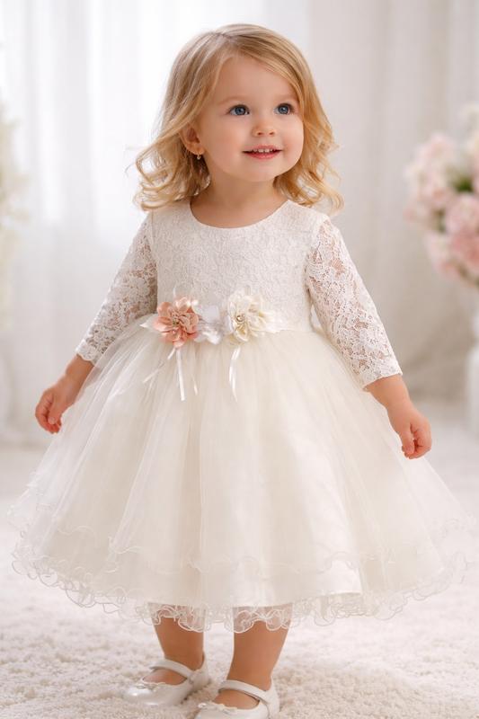 Елегантна дитяча сукня білого кольору в новому стані. Ідеально підходить для урочистих подій та свят. Особливості: • Ажурний верх з мереживним візерунком • Пишна багатошарова спідниця (фатин, шовк, бавовна) • Комфортна бавовняна підкладка для ніжної дитячої шкіри • Декоративні квіти зі стрічок на поясі • Рукав три четверті довжиною 23 см Розміри: • Обхват талії: 52 см • Довжина виробу: 45 см • Розмір: на 2-3 роки Матеріали: фатин, шовк, бавовна Стан: новий Колір: білий