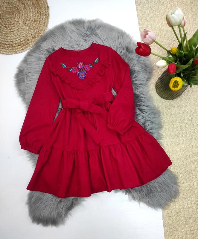 🧡В наявності 🧡 Неймовірно гарна сукня з вишивкою тканина вельвет манжети на резинці,поясок в комплекті заміри: довжина/рукав від плеча/погрудей 110-63/39/28 116-67/42/29