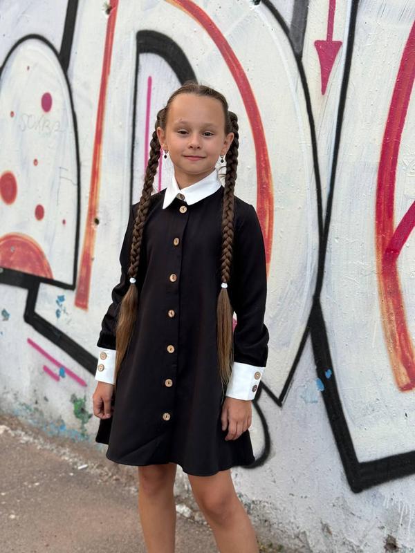 Сукня арт. mx. 1159 Размеры: 122, 128, 134, 140, 146, 152 Ткань: качественная креп костюмка Цвета: темно синий, черный, графит Легкое платье под любой школьный образ, на пуговицах Цена 770 грн