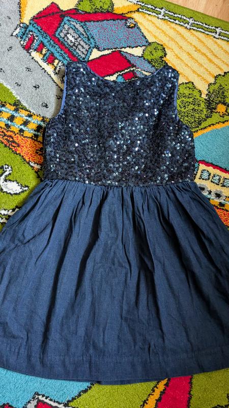 Джинсова сукня в паєтках Gap, на 6-7 років, стан нової, але є 2 мікро плямочки.