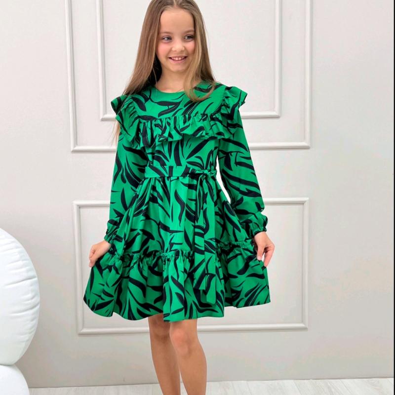 Платье для девочек красивой модели, имеет в наличии в размере 122,128,134,140,146. При необходимости выполните дополнительные замеры и фото.