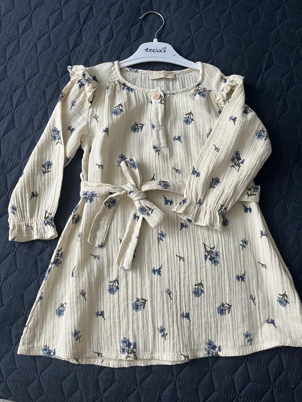 Легкое детское платье под поясок 98 размер, без подкладки, легкая ткань не просвечивает