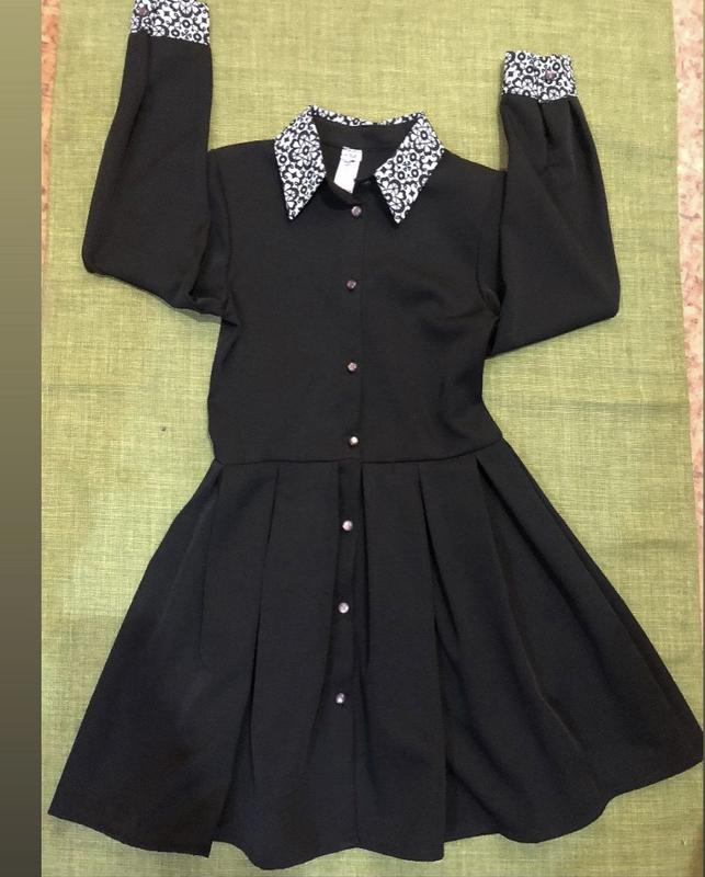 Сукня на дівчинку В наявності два різні розміри: на зріст 134 см та 152 см Стан: новий Тканина: поліестер Колір: чорний/білий Заміри надішлю за запитом.