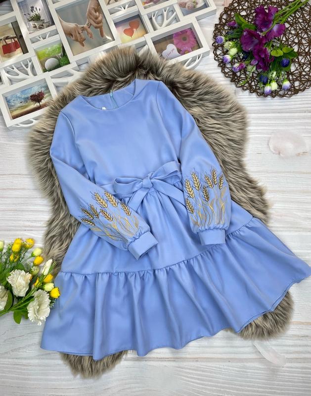 Нежное платье с вышивкой для красавиц 💗 Застегивается по спинке на молнию, завязывается под поясок ткань костюмка барби Замеры : Длина/пог/рукав от плеча 146 - 77/37/53 152 - 80/38/56 158 - 83/39/59