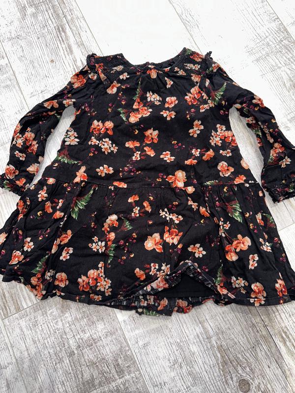 Бавовняна двошарова сукня. Без дефектов. Черный с цветками.