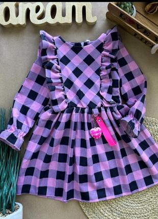 Стильна сукня у клітинку! Якість- люкс. Неймовірно стильна виглядає на дівчатках! Рукава- призібрані на резинці. Спереду- прикрашено рюшами. Сзаду застібка та пояс. Тканина- французський трикотаж. Розміри: 98 – рукав 34 довжина 51 104 -36/54 110 – 38/56 116 – 41/58 122 – 43/61 Ціна: 755 грн *Брелок може відрізнятися від фото. КрохпельКа