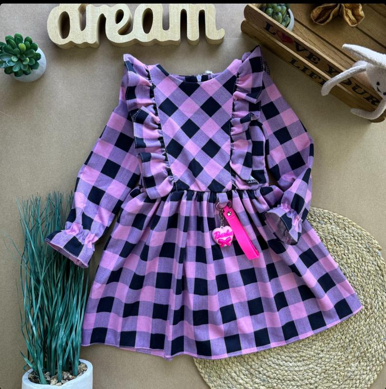 Стильное платье в клетку! Качество- люкс. Невероятно стильная смотрится на девочках! Рукава-присобранные на резинке. Спереду- прикрашено рюшами. Сзади застежка и пояс. Ткань французский трикотаж. Размеры: 98 – рукав 34 длина 51 104 -36/54 110 – 38/56 116 – 41/58 122 – 43/61 Цена: 755 грн *Брелок может отличаться от фото. КрохпельКа