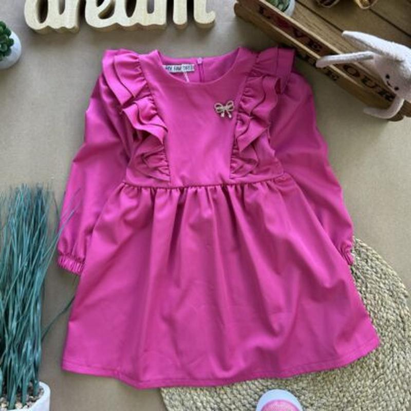 Невероятно стильное, нежное платье! Качество – люкс! Рукава и пояс – присборенные на резинке. Спереду- прикрашено рюшами. Сзади застежка. Тканина- плотний софт. Размеры: 92 – рукав 33, длина 42 98 – 34/ 50 104 -38/ 55 110 – 39/ 56 116 – 43/ 59