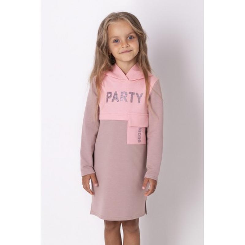 Комфортне плаття з капюшоном для дівчинки. Талія завищена. Сукня прикрашена функційованою кишенею та написами з блискітками. Склад: 95% бавовна, 5% еластан. Розмір 104 довжина 55, рукав 36 Розмір 110 довжина 59, рукав 40