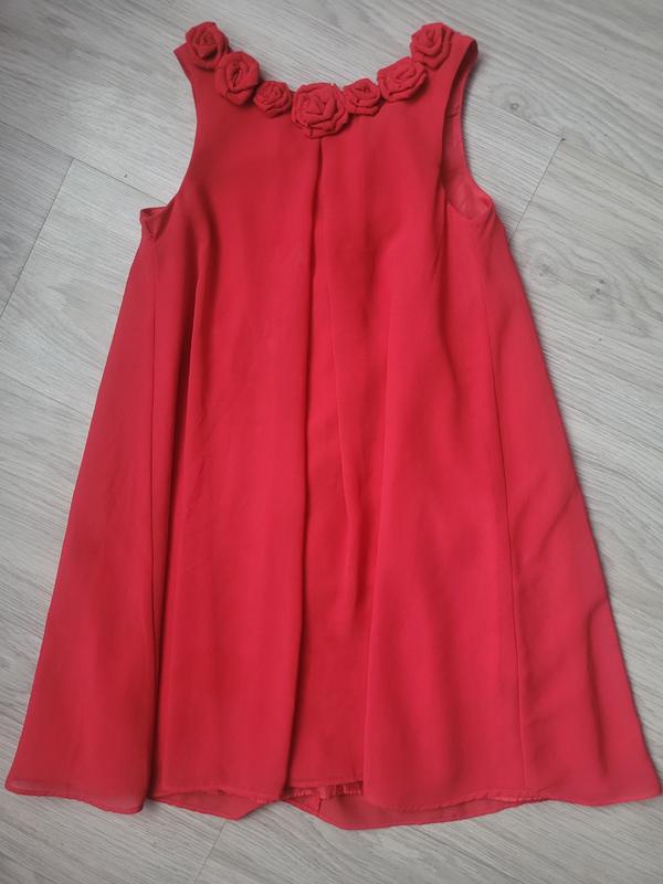 Пролом платья h&m. Свободного кроя, декорировано цветами. Застегивается сзади на пуговицу. Размер122. Цвет-корал