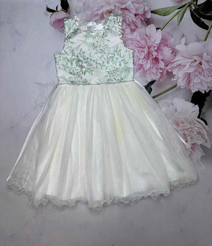 Пышное платье с вышитым узором Украшено жемчугом на талии Завязывается на талии Блестящая юбка Состояние идеал 🏷️Cinderella 10 лет Длина 85(30). Пог 36