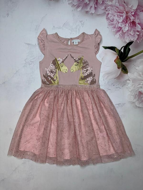 Платье с единорогами Юбка с блестящим напылением Состояние отличное 🏷️Primark 7-8 лет/128 Длина 66(26). ПОГ 31