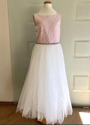 Выпускное, праздничное платье на девочку. Украшено стразами и бусинами, очень красивое.