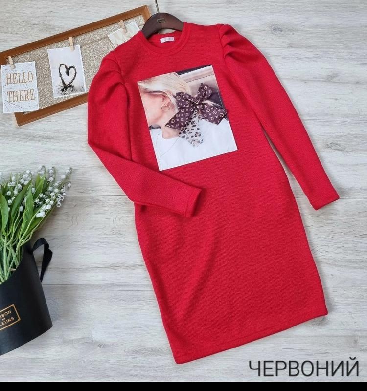 Красивое платье для вашей красавицы ткань турецкий трикотаж украшена нашивкой 152(L-1 шт)-длина 82,пог 37,рукав 58см