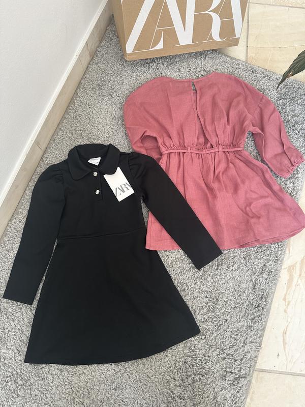Все Новое с бирками, с официального сайта Испании. 72 полиэстер, 24 вискоза, 4 эластан,- красиво тянется. Размер по набору 116(6роков)- Длина 57, Плечи 24, грудь 29, Талия 27, Рукав 42 - черное - Розовое -По талии резинка, на подкладке. Длина 58, рукав от шеи 44, талия 27, грудь