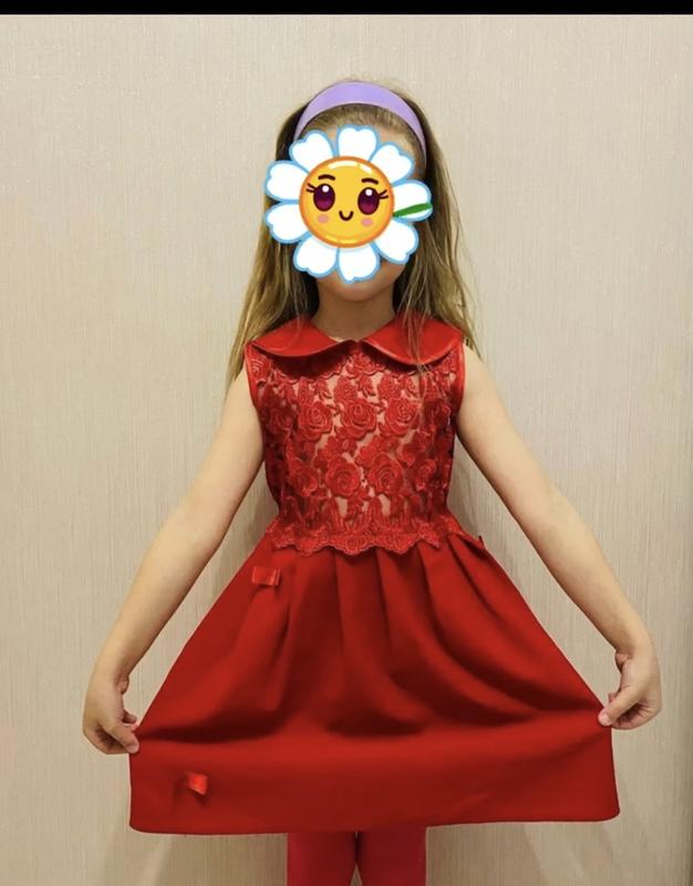 Платье для девочки красного цвета Размер около 5/6 лет Длина 60, пог 31. Сзади застегивается на пуговицу и завязывается на поясочек Состояние хорошее