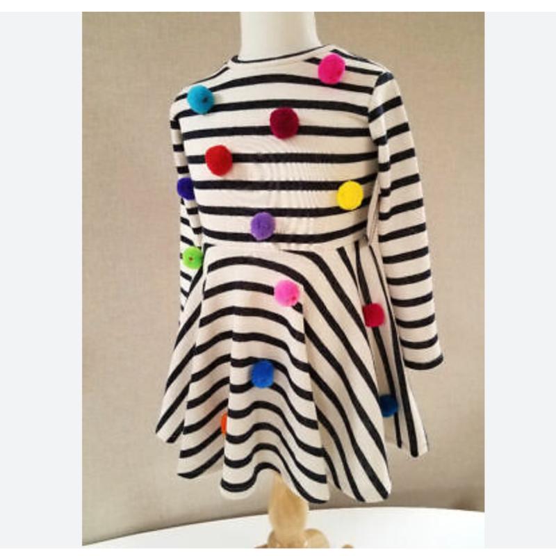 Просьба через кнопку КУПИТЬ оформлять после договоренности ❤ Новое стильное платье Halabaloo с длинными рукавами для девочки с забавными яркими помпонами. Очень качественная плотная ткань, хорошо тянется. Длинный рукав, небольшой круглый вырез горловины, отрезная юбка солнце-клеш, полосатый принт.