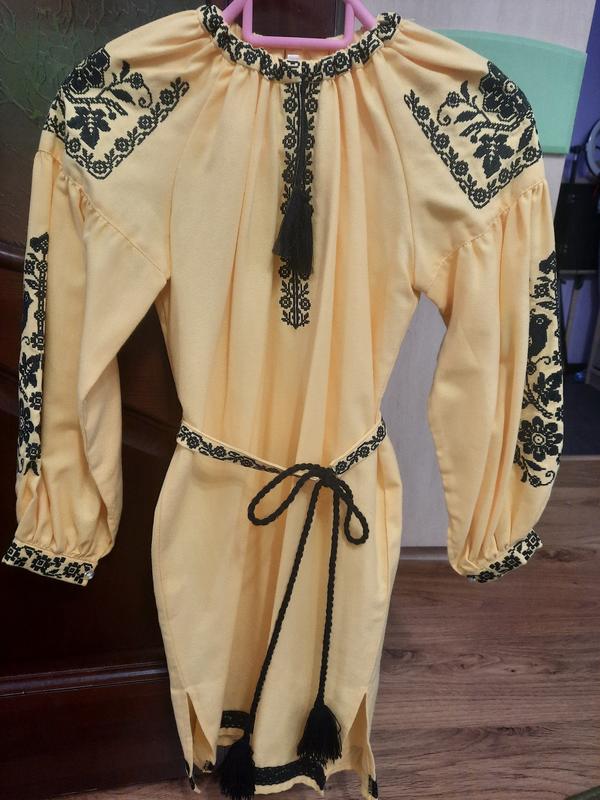 вышитое платье для девочки,размер пишет 146, но в реалии служит дольше. яркий желтый цвет и нежная вышивка очень хорошо компонируют.стан новой.удавали всего 2 раза.