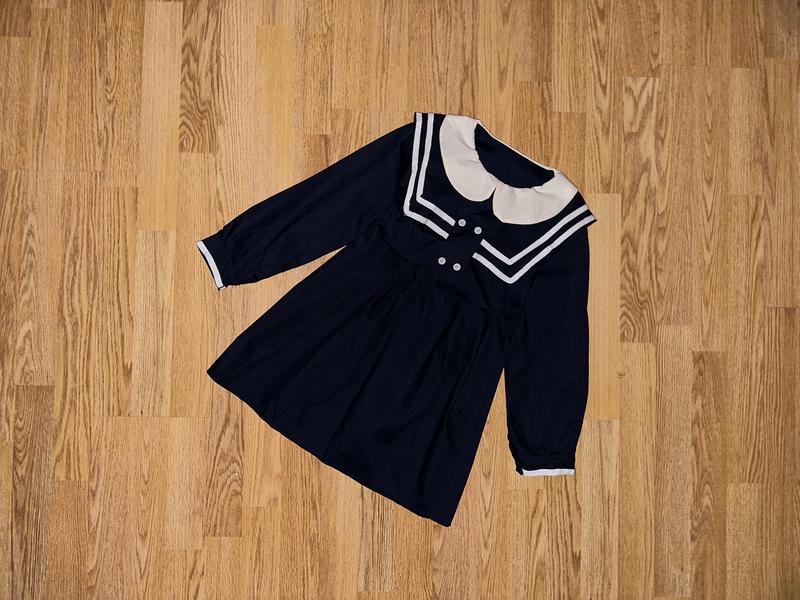 Темно синее платье с воротничком 7-8р 485грн Длина 64, рук от плеча 45, пог 38 Котон