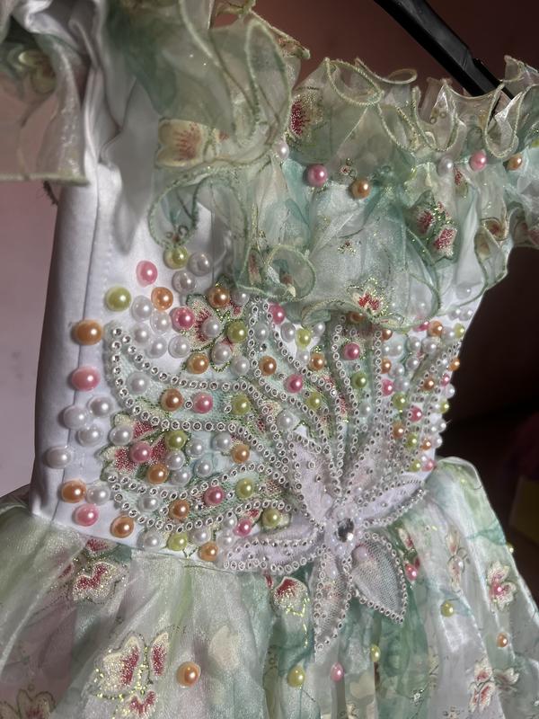 Платье с разноцветным пышным подьюбником , с бисером и вышивкой , сзади корсет