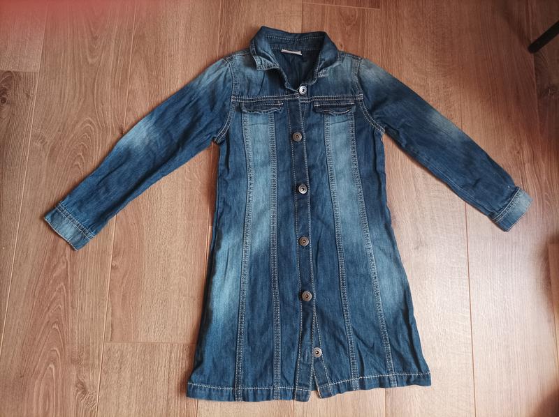 Джинсовое платье в хорошем состоянии, длина 65 см, рукав 44 см, ПОГ 34 см