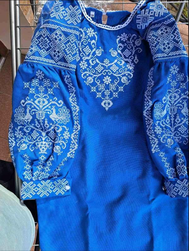 Платье вышитое вышиванка цвет васильковый домокатный холст замеры скина отправка в день заказа!!