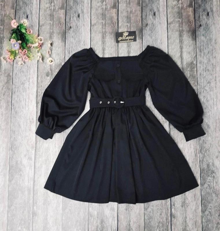 Стильное платье для модниц По переду пуговицы декоративные. Поясок в комплекте. Тканина- костюмна. Замеры: 140 длина - 68см, рукав - 52см, полуобхват груди - 34см 146 длина - 74см, рукав - 55см, полуобхват груди - 36см 152 длина - 76см, рукав - 59см, полуобхват груди - 40см 158 длина - 82см, рукав - 64см, полуобхват груди - 42см Размеры в наличии: 140-3шт 146-4шт 152-3шт 158-3шт арт мод