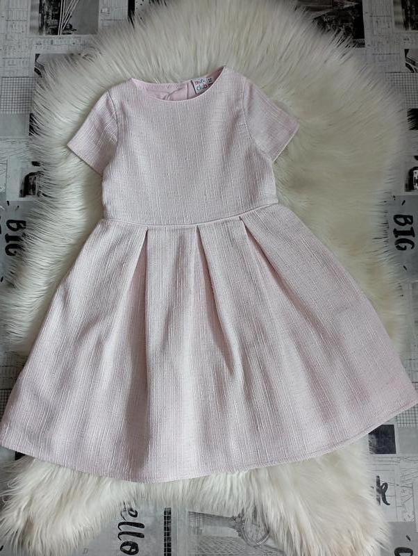 Нарядное, проводное платье с люрексом Minи Club, Ткань мягкая, приятная (не твердая, как может казаться по фото )) Размер из бирки 4-5 р. 104-110 см. Заміри є на фото. В отличном состоянии. Заміри є на фото.
