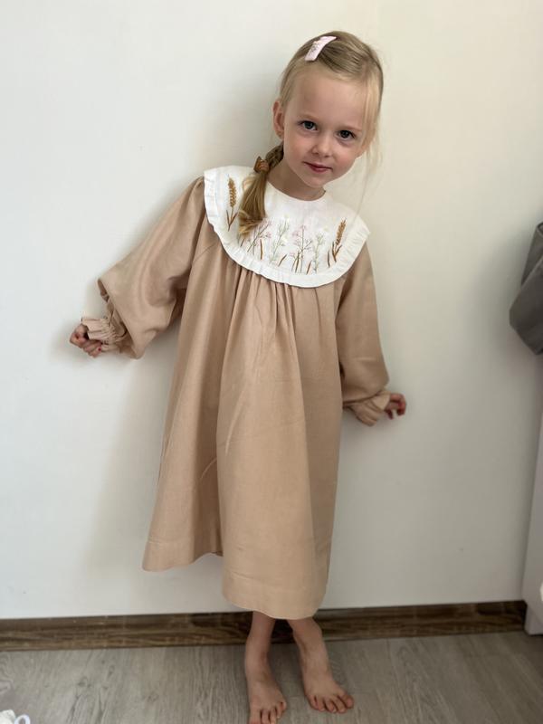 Платье льняное с ручной вышивкой на 4-6 лет. Полностью ручная работа.