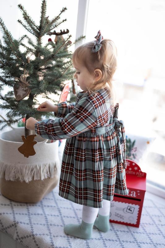 Платье в клетку, отлично подойдет для новогодних праздников. Тепленькое, в середине байка.В комплекте 2 бантика заколочки. Размер 92 Состояние новой, одевали на фотосессию Стоимость 500 грн Украинский производитель