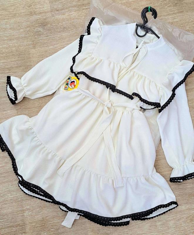 Нежное платье для девочек В поясе резинка, поясок в комплекте. Ткань: креп-жатка, хорошего качества. Замеры: 134 длина - 74см, полуобхват груди - 39см, рукав от плеча - 45см. 146 длина - 78см, полуобхват груди - 42см, рукав от плеча - 50см. Мс