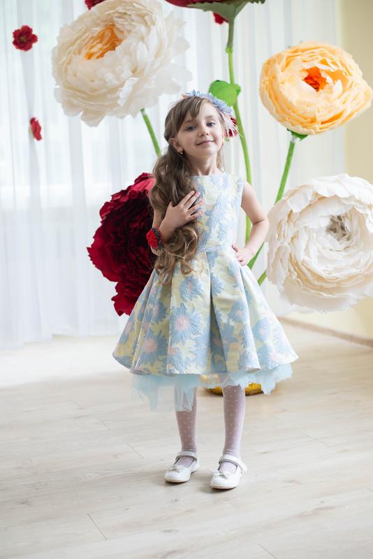 Праздничное платье из элитного жаккарда и фатина на подкладке длиной 65 см, в идеальном состоянии.