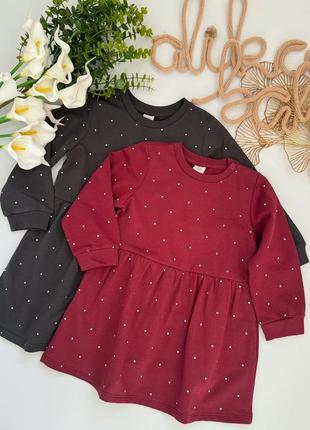 Сукня в горошок від бренду H&M😍 Легка бавовняна тканина, довгий рукав Утеплена мікрофлісом 🍂❄️ Розмір 92 -темно червона