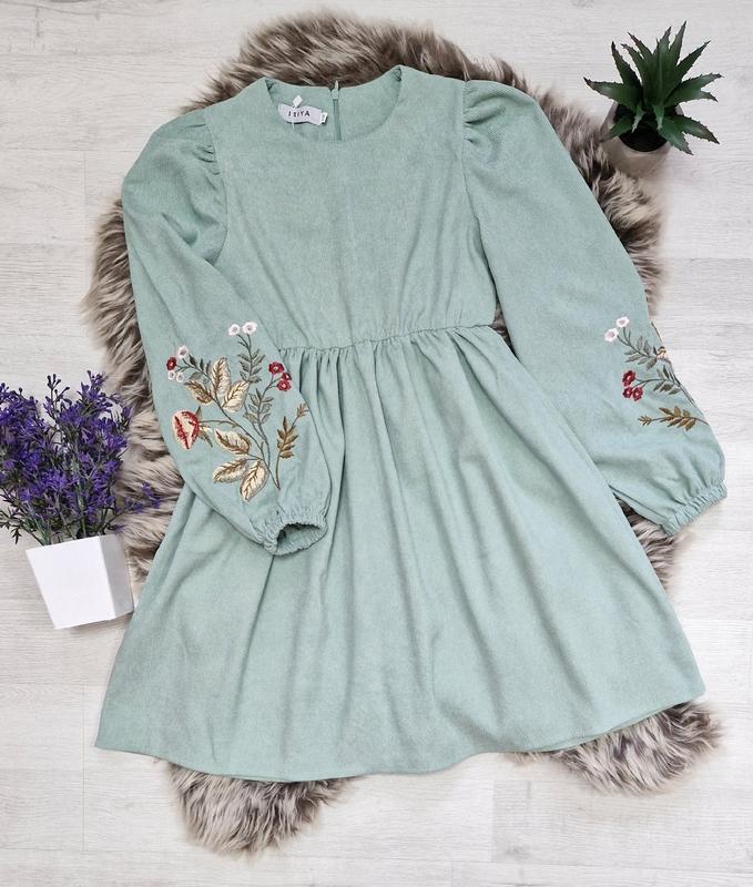 Нежное платье с вышивкой, которое можно носить и каждый день, на праздник. Ткань вельвет, машинная вышивка, на спине потайная застежка, в талии есть резинка. РЕКОМЕНДУЮ 🥰 длина/перчатка/п********* +-2 см