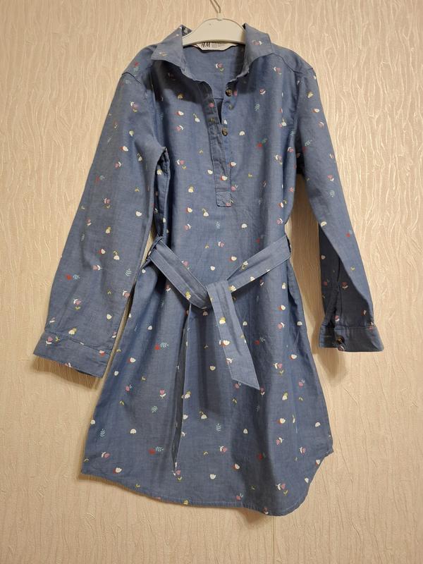Платье-рубашка H&M,6-7 лет,стан новой вещи, одели один раз,потом выехали длина 67 см пог 37 см плечи 31 см рукав 41 см