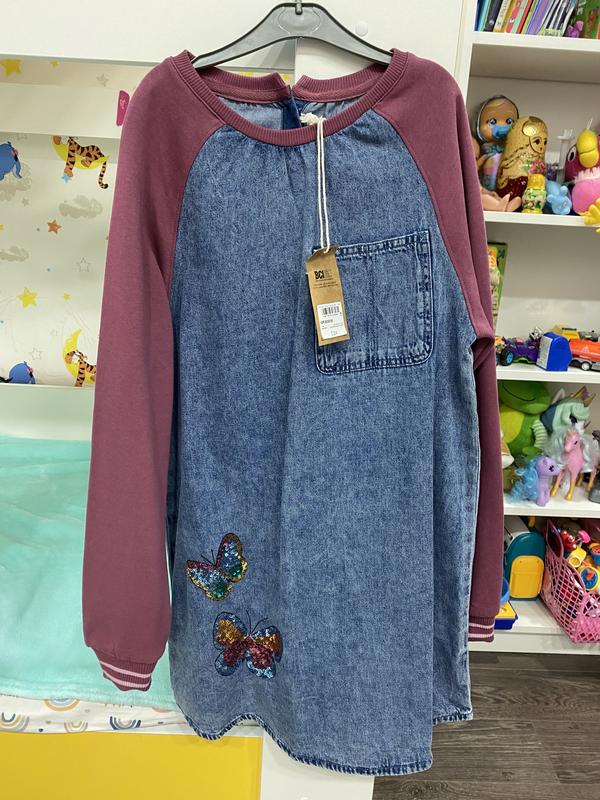 Платье джинсовое, рукава трикотажные утепленные Ширина 42 Длина 76 Рукав от горловины 67