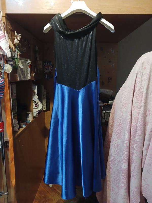 Достаточно старая, но но но ношена буквально несколько раз и выглядит очень прилично. Этикетка бренда стерта, но инструкции по уходу цели. Отлично подойдет на детский праздник. Из дефектов - два маленьких пятен сзади и спереди и потрепанные нити на поясе (см. фото). Имеет подъюбник. Материал - атлас. Длина - 96см. П/о талии - 31см. П/о плеч - 32см. Длина воротника - 16 см (складывается на ключах). В комплекте есть перчатки до локтей, тоже потрепанные нити (длина 32см)