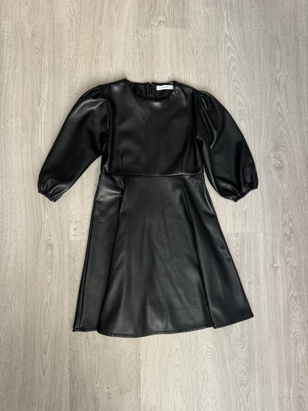 Кожаное платье для девочки-подростка В идеальном состоянии, качественная эко-кожа, внутри мягкая теплая подкладка. На рост 140 см, замеры находятся на фото