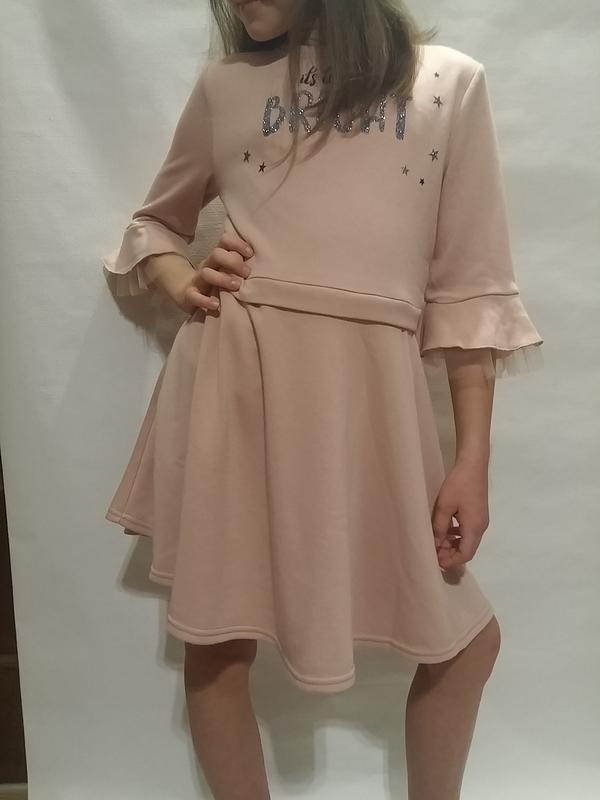 Платье трикотажное для девочки пудрового цвета. Ткань приятная на ощупь. Может быть как повседневной, так и праздничной.