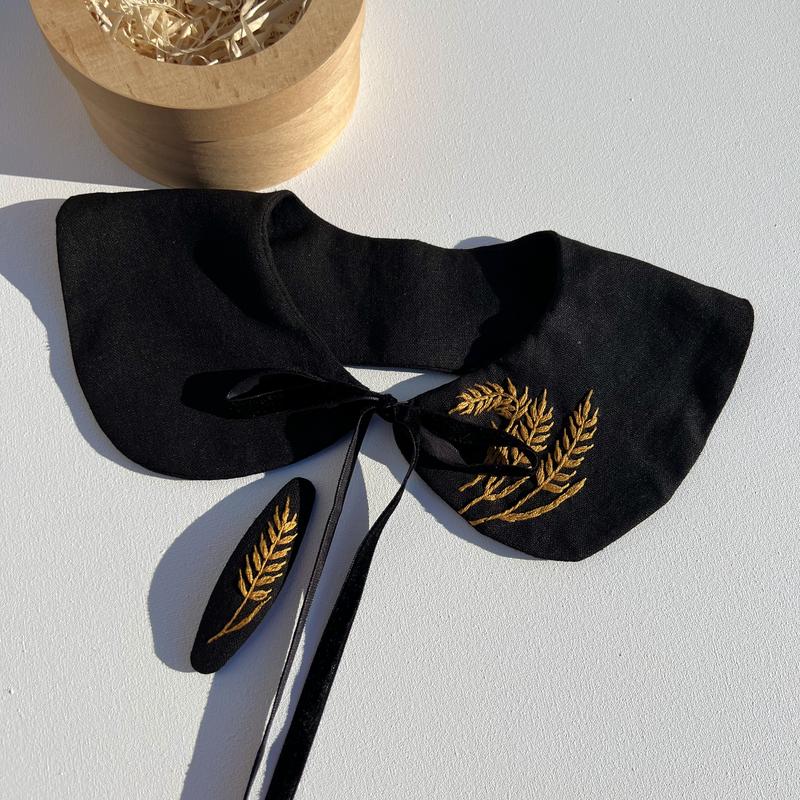 Наявність уточнюйте🌸 Набір вишитих аксесуарів, виключно ручна робота: чорний комірець 28,5 см*12,5 см. Розмір 6- 10 років (за рахунок завязочок). 400 грн., вишита заколочка 7, 7 см., 100 грн. Дуже стильно під сукню чи вишиванку.❤️ Якісні матеріали, вишито найкращими ниточками DMC Франція. Завжди гарне брендоване пакування. Стануть чудовим аксессуаром або подарунком. Ціна остаточна. Також можна комбінувати з іншими, запитуйте, зберу гарний подарунковий набір. 💖 Є також вишиті бантики, резиночки, обручі, заколочки, краватки-метелики хлопчику. Оплата на картку. Відправочка Новою поштою, або Укрпошта (нею раз на тиждень, за домовленістю).