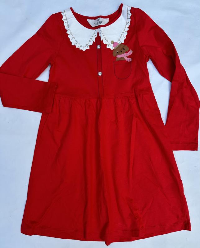 В наявності легка, тонка сукня з новорічним принтом H&M‼️ Розмір 4-6 років (зріст 110/116 см) Довжина 61,5 см. Довжина рукава 42,5 см.