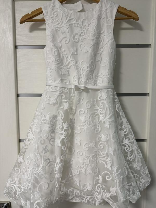 Довге плаття з комбінацією мережива для дівчинки Застібка взаді на замок і на ґудзик Біла підкладка Розмір 152 Український виробник Suzie Усі фото живі, окрім платтячка на дівчинці