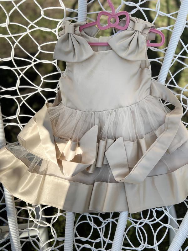 Детское шикарное платье отлично подойдет для любого праздника Платье не одевалось так как прогадали с размиром( Ориентируйтесь по замерам Длина от плеча 53-54 Талия 29 Плечи 23 За более детальными фото, убедитесь
