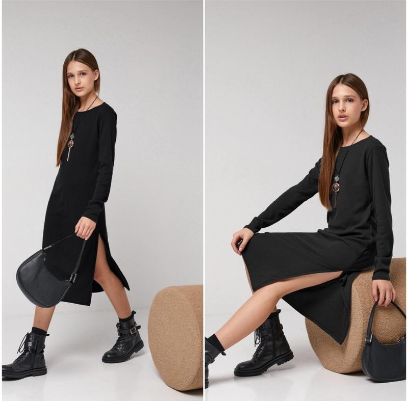 Стильное платье миди с кулоном. Снизу сбоку есть разрез. Кулон в комплекті. Ткань: рубчик с напылением ангорой, мягенькая, красиво тянется. Замеры: 140 длина - 93см, полуобхват груди - 36см, рукав от плеча - 53см. . Мс
