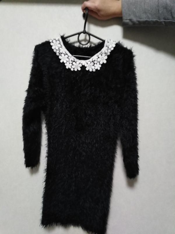 Платье травка для девочки 140 см. С белым кружевным воротничком.