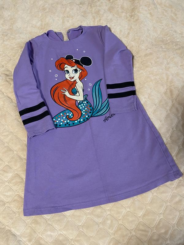 Хлопковое платье с принтом любимой русалочки Ариэль Состояние очень красивое Размер 128 Длина 63 см Рукав 40 Под грудиной 33 см