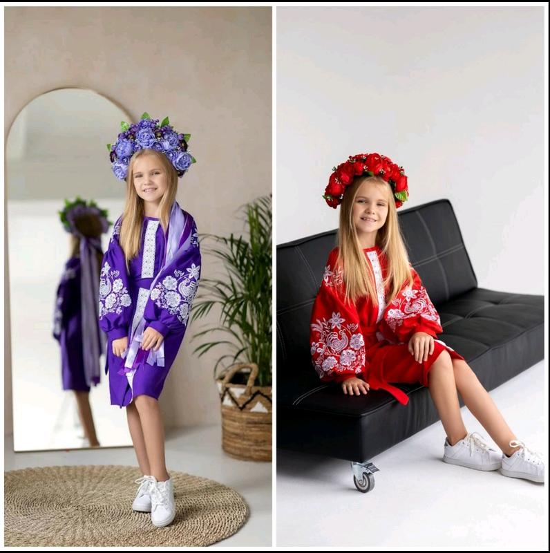 сукня вишиванка вишита сукня квіти фіолетова червона тканина габардин відправка в день замовлення
