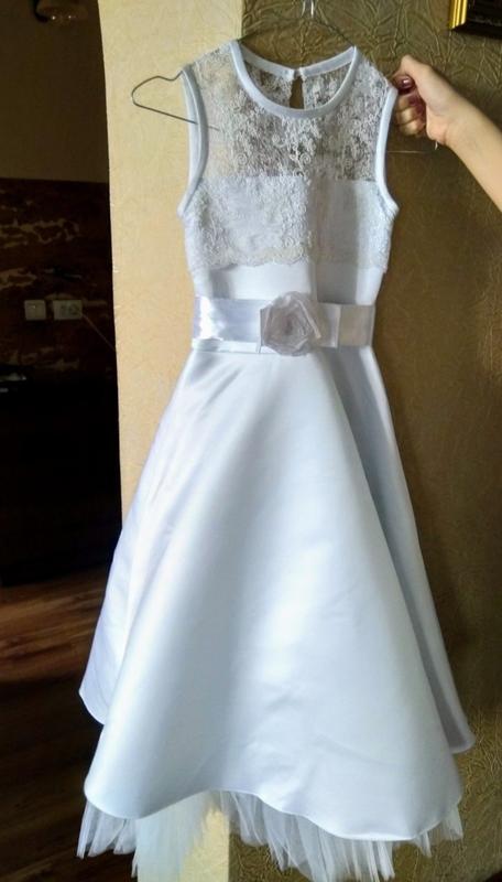 Платье праздничное, белоснежное на девочку, рост 128-134. В комплекте есть перчатки, сумочка и подюпник. Состояние нового (одевали на выпускной и новогодний праздник в садочку)